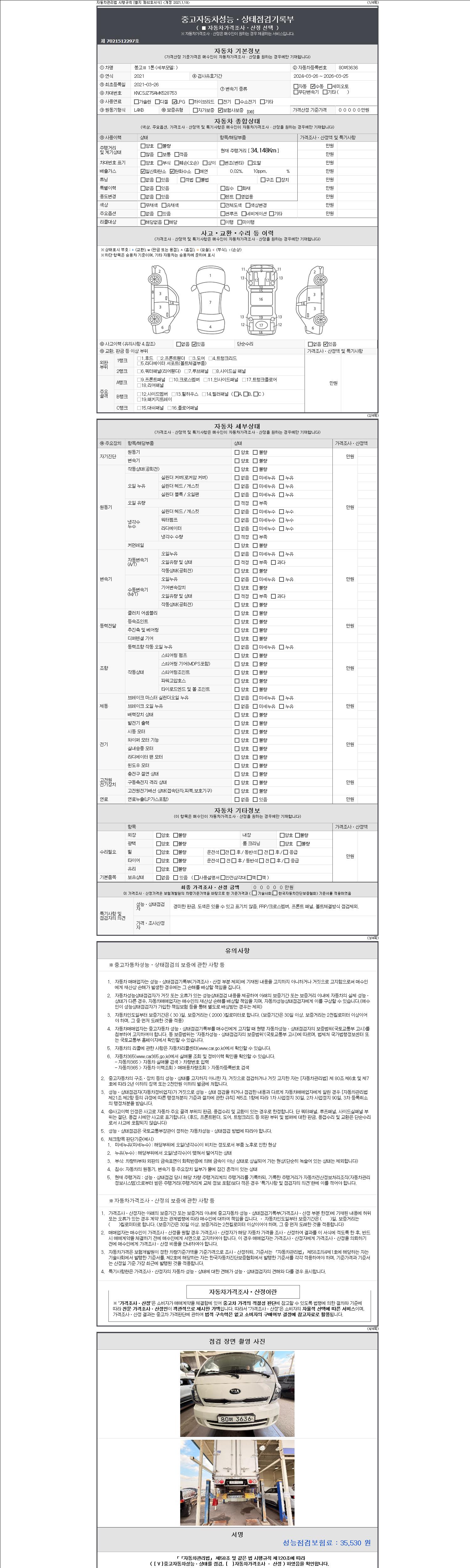-중고자동차 매매업자를 통해 차량을 구입하실 경우 반드시 "중고자동차 성능, 상태점검 기록부"를 교뷰 받으셔야 하며, 매매업자는 반드시 의무 교부 하여야 압니다.