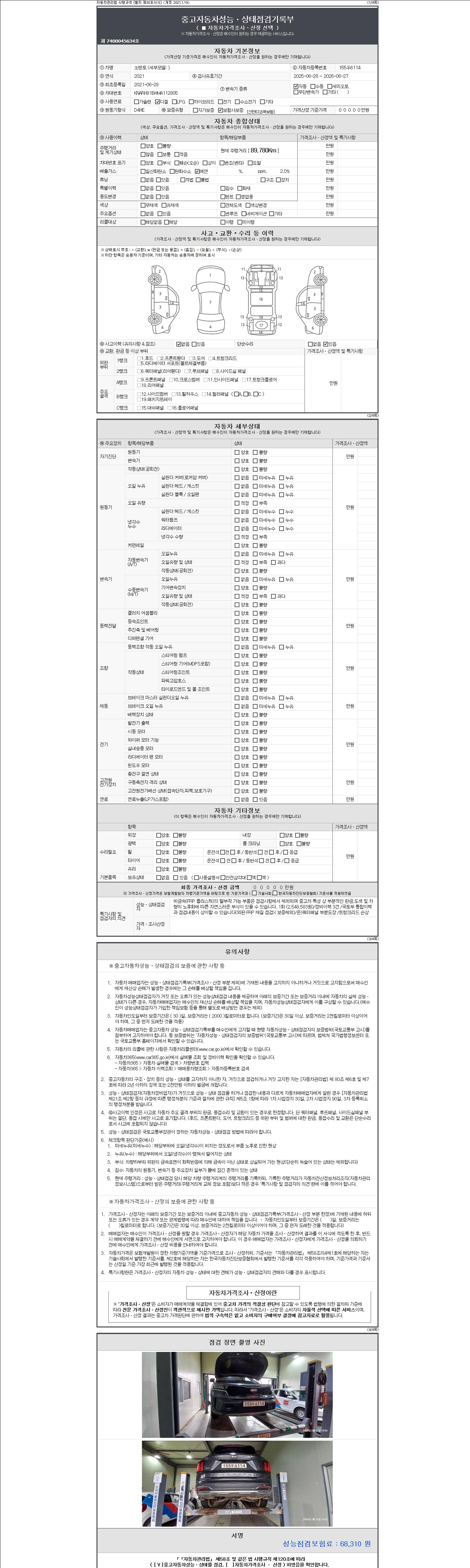 2. 차량 등록증이나 성능점검지 등을 상담자에게 요청및 확인하시고 사전에 미리 점검 하시기를 권유드립니다.