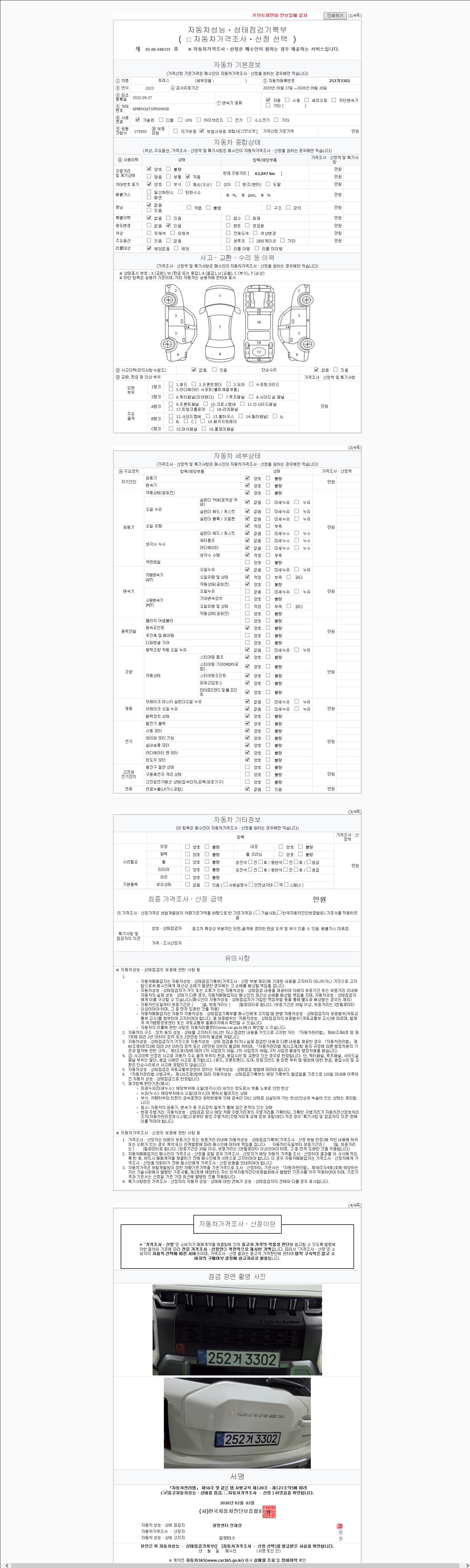 2. 차량 등록증이나 성능점검지 등을 상담자에게 요청및 확인하시고 사전에 미리 점검 하시기를 권유드립니다.