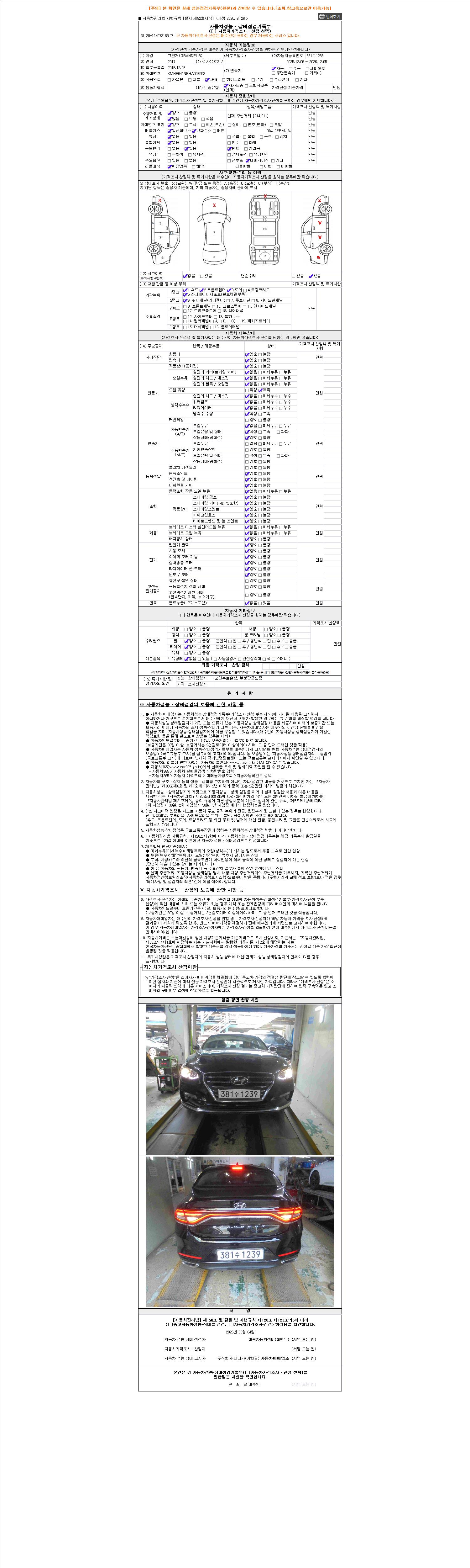 2. 차량 등록증이나 성능점검지 등을 상담자에게 요청및 확인하시고 사전에 미리 점검 하시기를 권유드립니다.