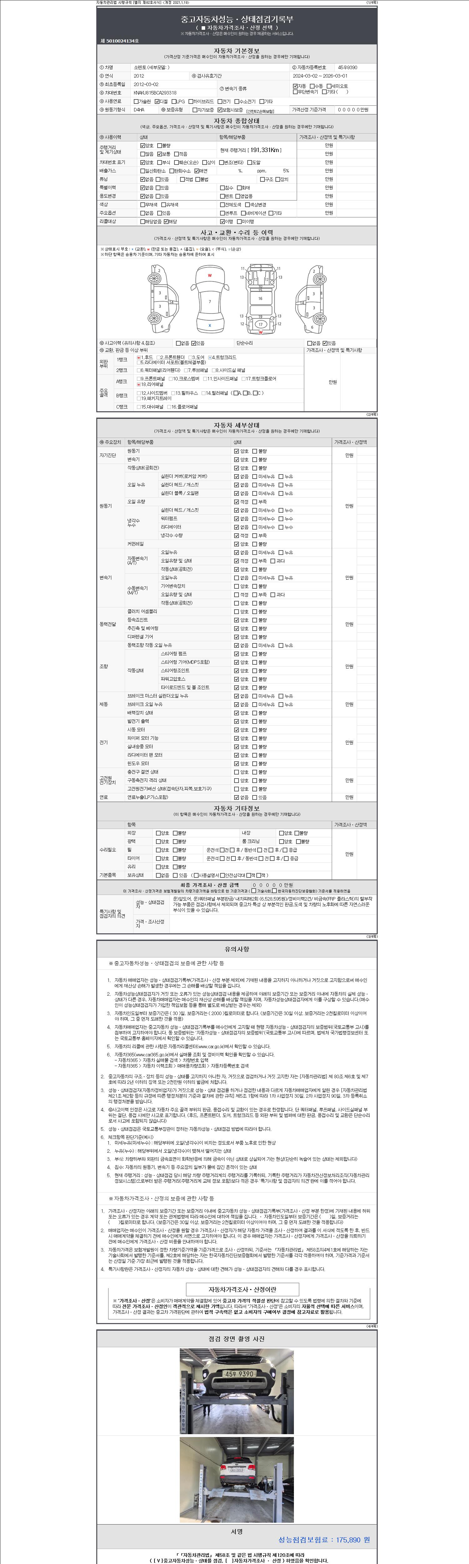-중고자동차 매매업자를 통해 차량을 구입하실 경우 반드시 "중고자동차 성능, 상태점검 기록부"를 교뷰 받으셔야 하며, 매매업자는 반드시 의무 교부 하여야 압니다.
