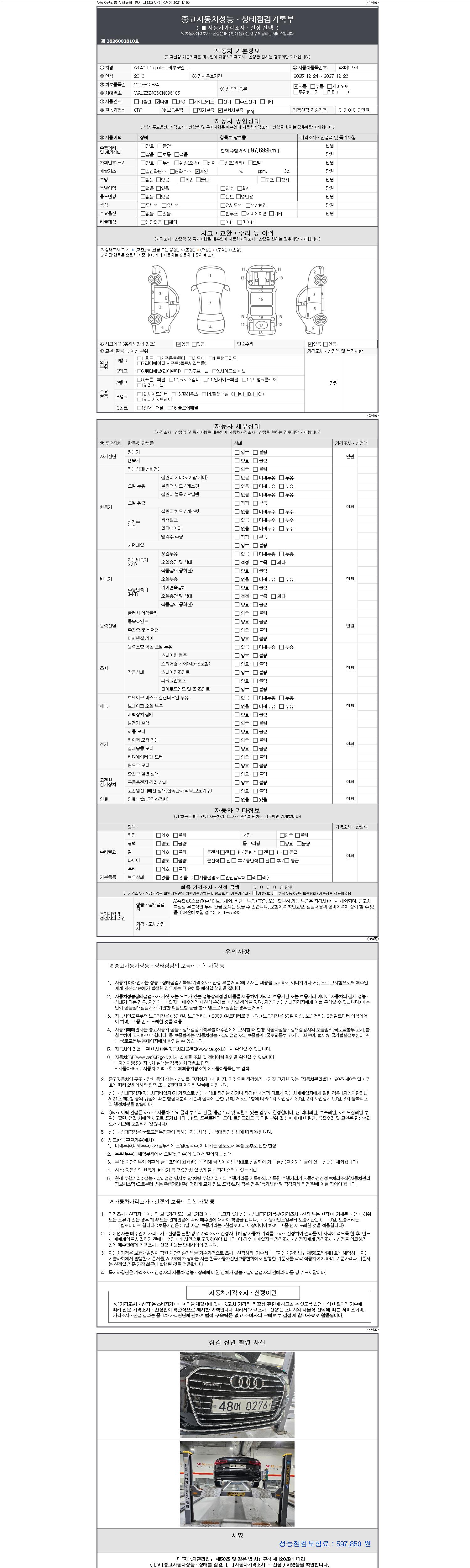 2. 차량 등록증이나 성능점검지 등을 상담자에게 요청및 확인하시고 사전에 미리 점검 하시기를 권유드립니다.