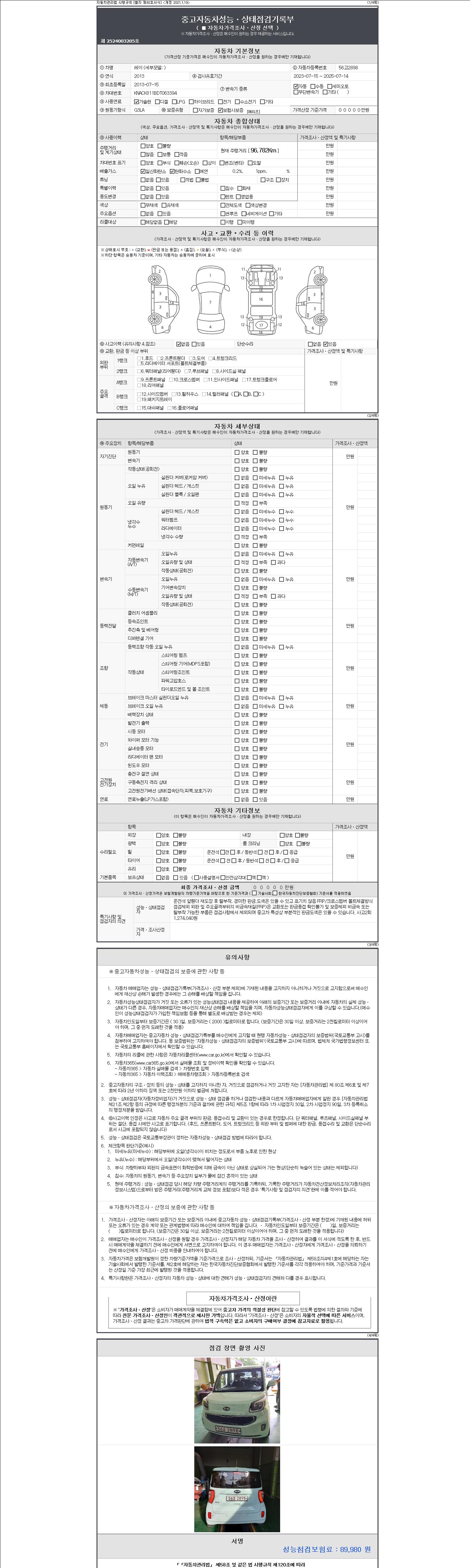 2. 차량 등록증이나 성능점검지 등을 상담자에게 요청및 확인하시고 사전에 미리 점검 하시기를 권유드립니다.