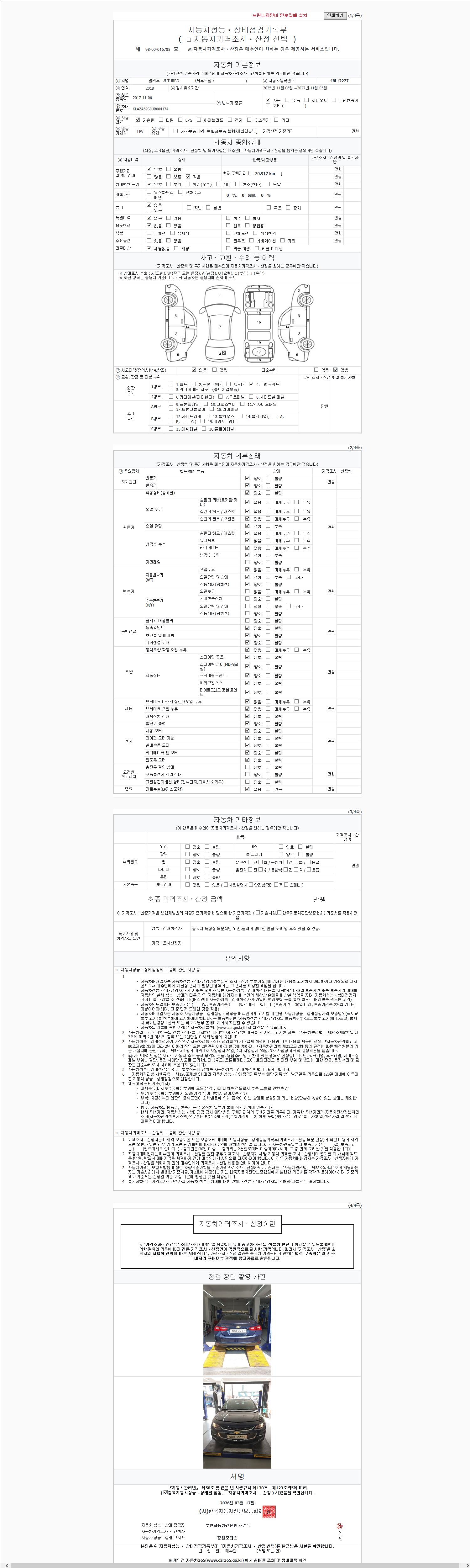 2. 차량 등록증이나 성능점검지 등을 상담자에게 요청및 확인하시고 사전에 미리 점검 하시기를 권유드립니다.