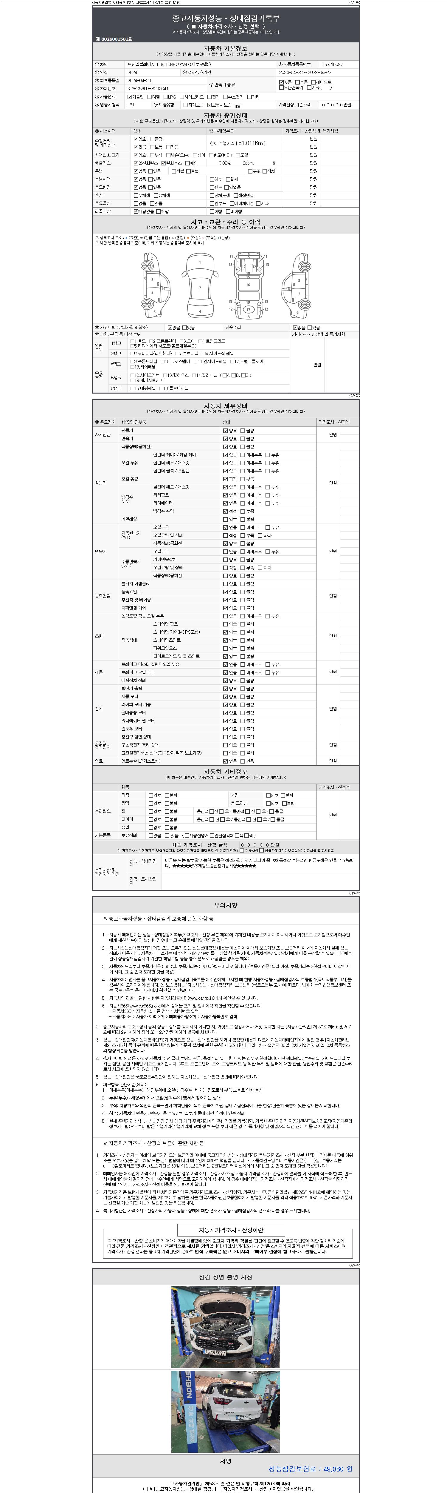2. 차량 등록증이나 성능점검지 등을 상담자에게 요청및 확인하시고 사전에 미리 점검 하시기를 권유드립니다.