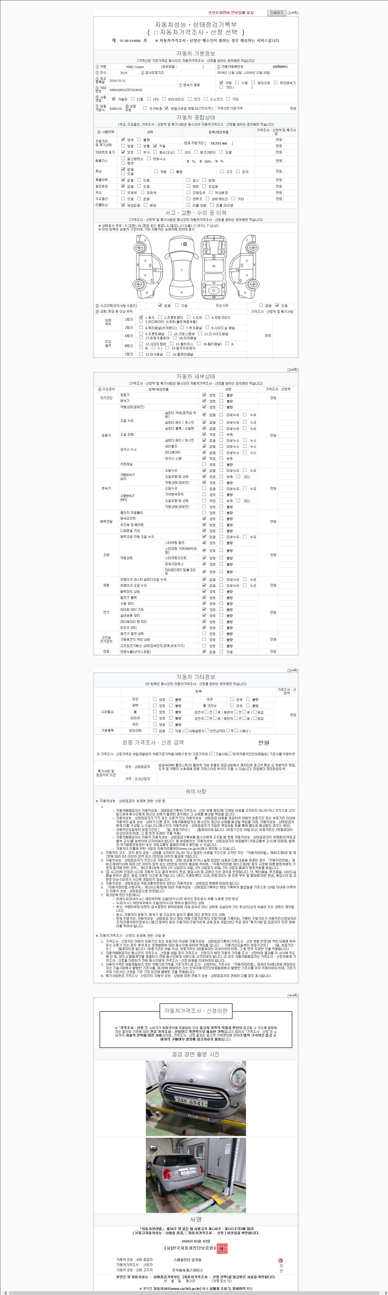 사고유무 성능기록부 참조 제시번호 제 2026006426 호