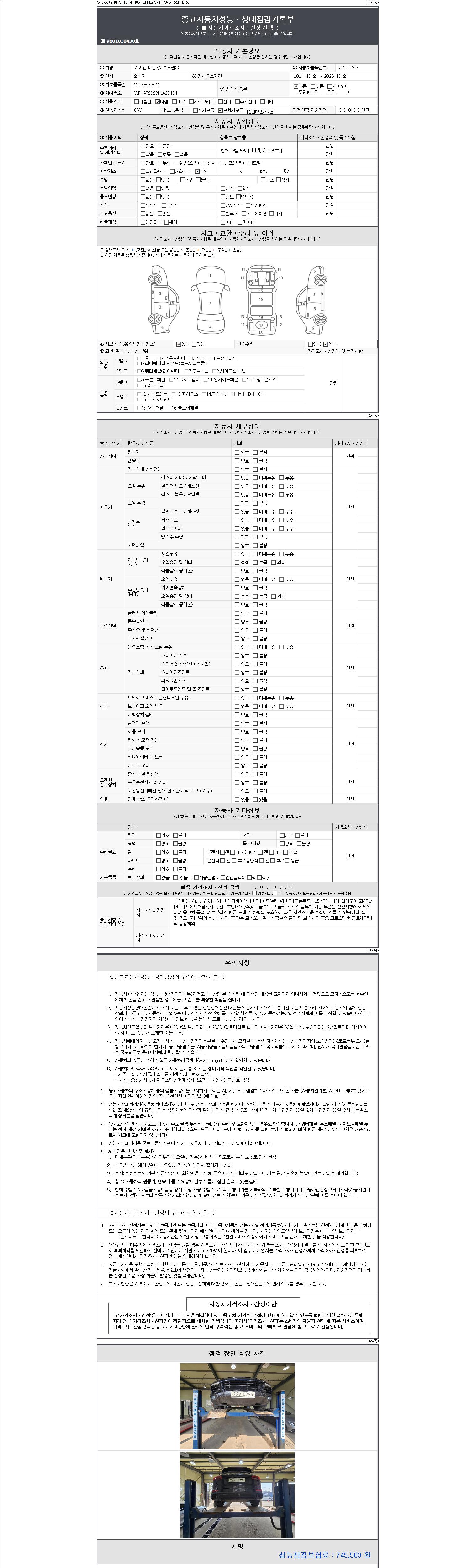 2. 차량 등록증이나 성능점검지 등을 상담자에게 요청및 확인하시고 사전에 미리 점검 하시기를 권유드립니다.