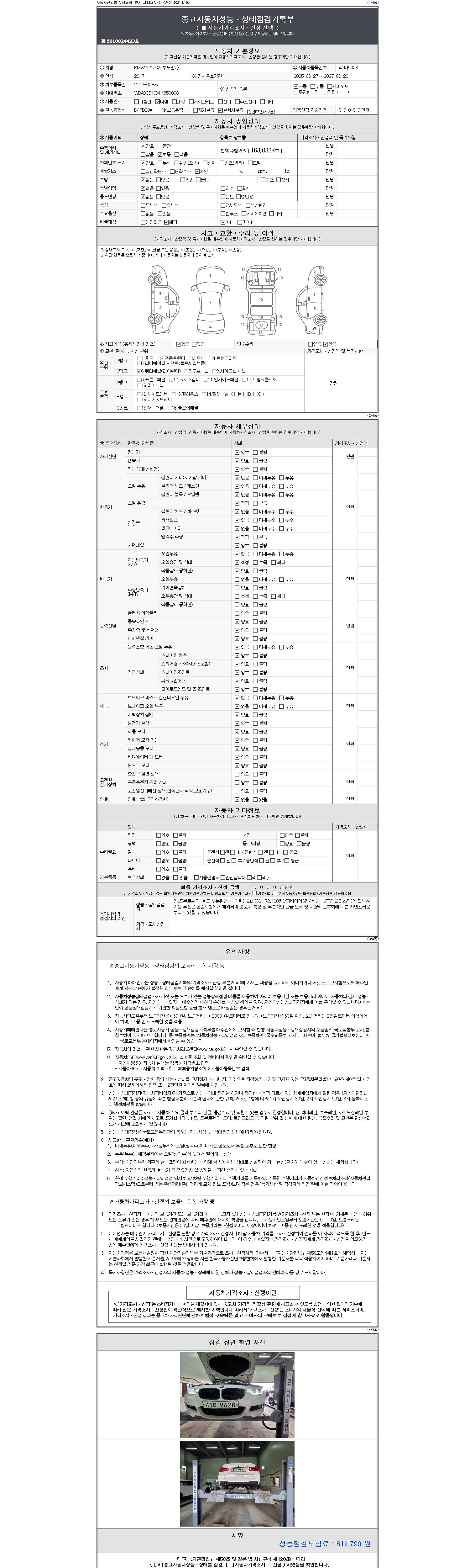 2. 차량 등록증이나 성능점검지 등을 상담자에게 요청및 확인하시고 사전에 미리 점검 하시기를 권유드립니다.