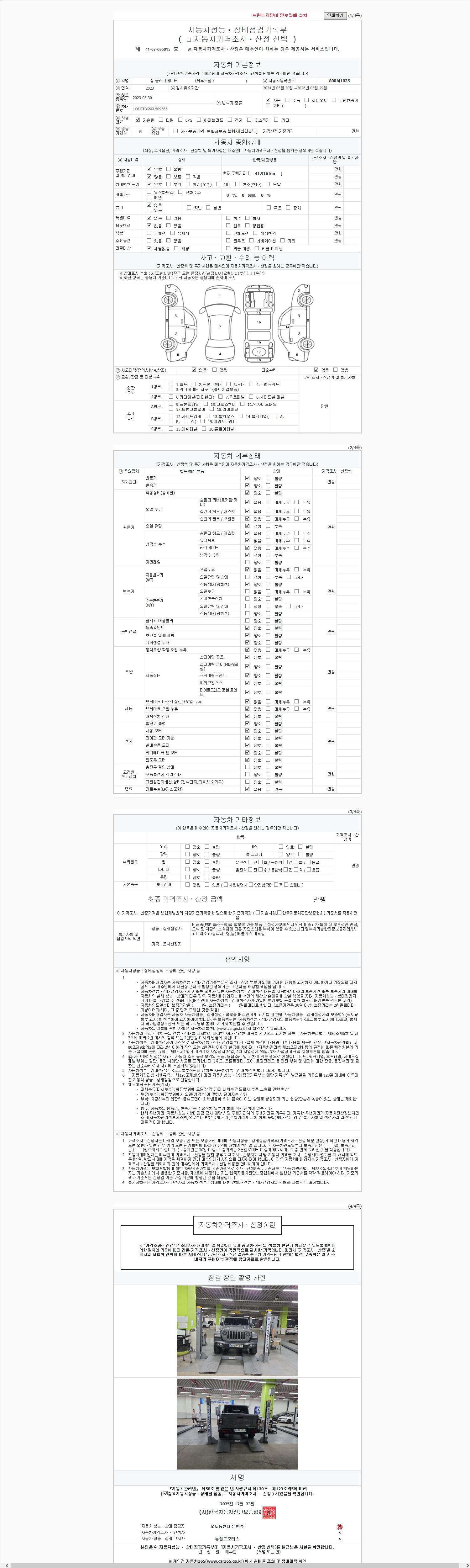 | 주행거리 | 41,915 km | 차량번호 | 800저1035 | 사고유무 | 성능기록부 참조 | 제시번호 | 제 2147483647 호 |
