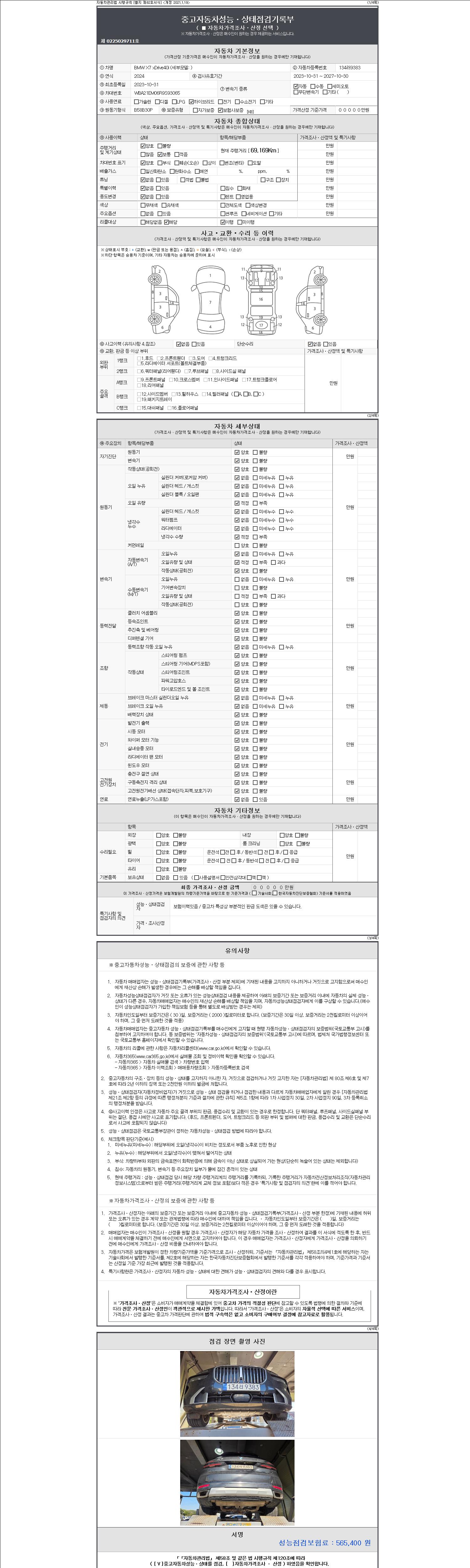 | 주행거리 | 69,169 km | 차량번호 | 134러9383 | 사고유무 | 성능기록부 참조 | 제시번호 | 제 2147483647 호 |