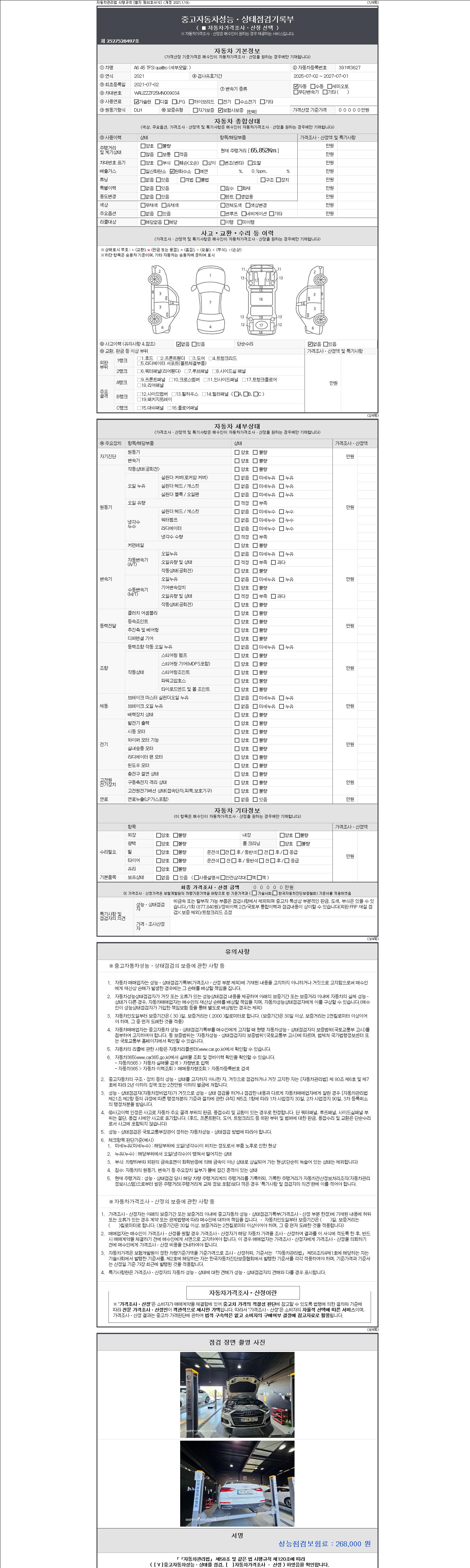 - 2. 차량 등록증이나 성능점검지 등을 상담자에게 요청및 확인하시고 사전에 미리 점검 하시기를 권유드립니다.