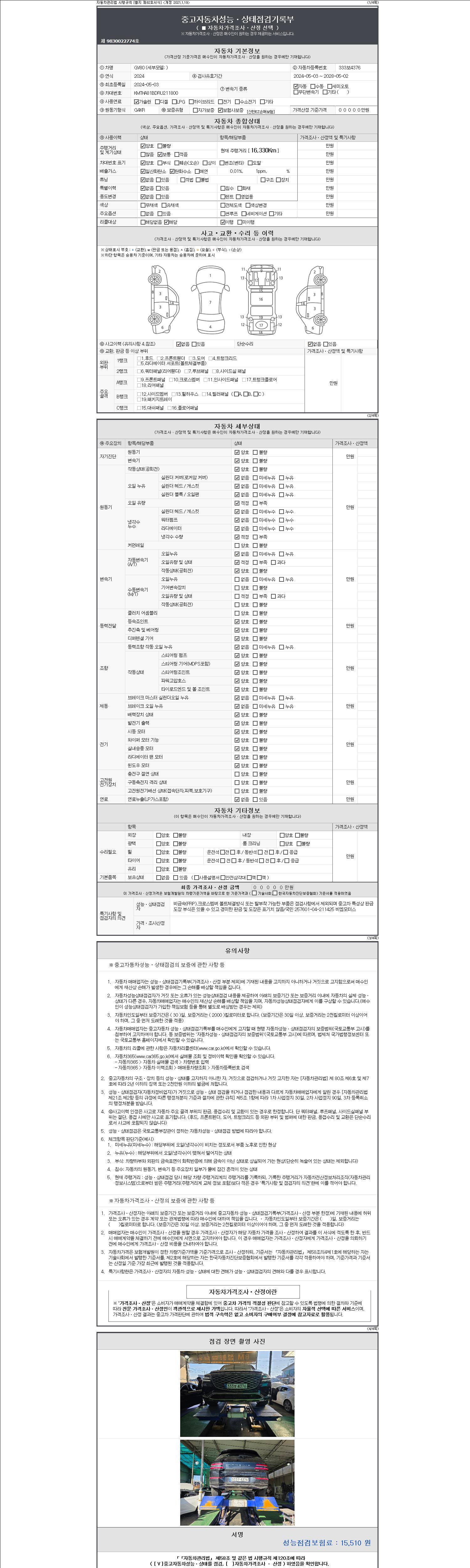 - 사고유무 : 성능기록부 참조