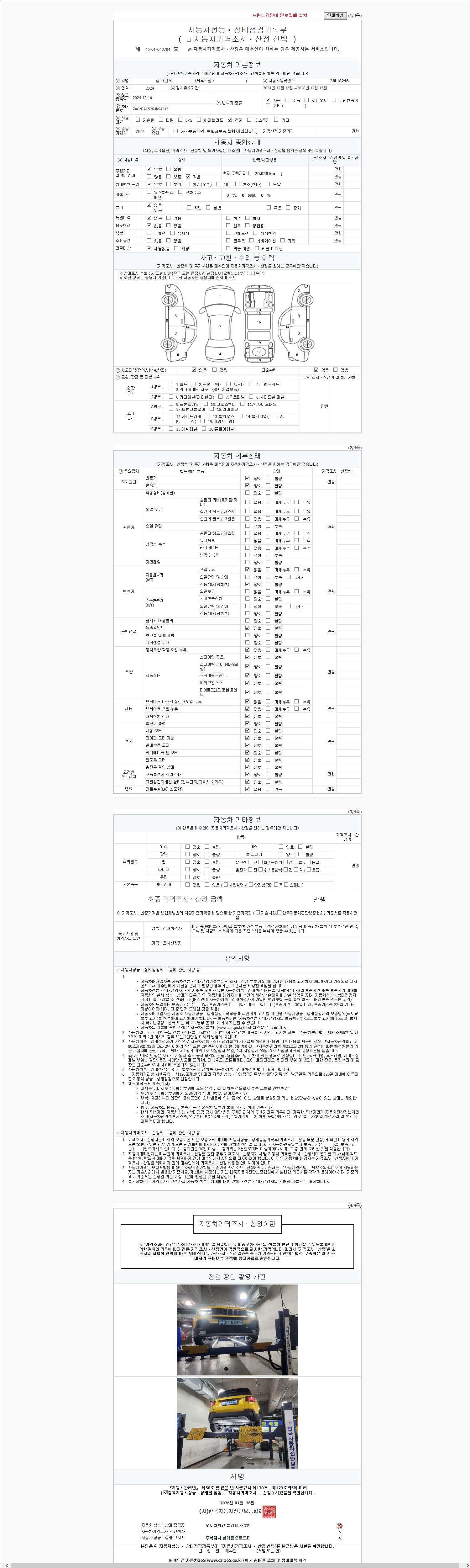 | 주행거리 | 20,058 km | 차량번호 | 38다8246 | 사고유무 | 성능기록부 참조 | 제시번호 | 제 2147483647 호 |