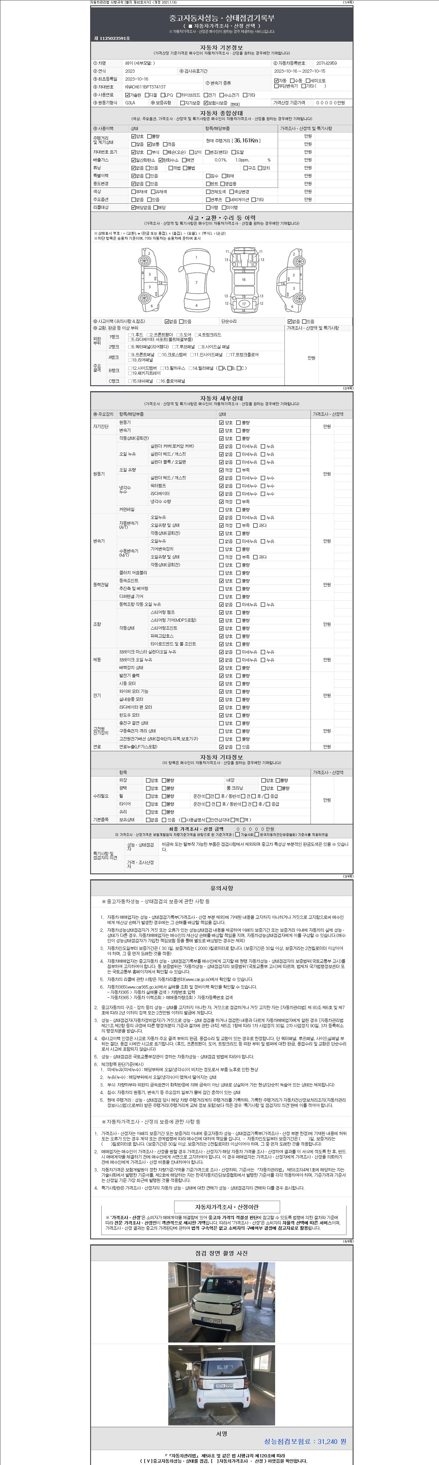| 주행거리 | 36,150 km | 차량번호 | 207나2959 | 사고유무 | 성능기록부 참조 | 제시번호 | 제 2147483647 호 |