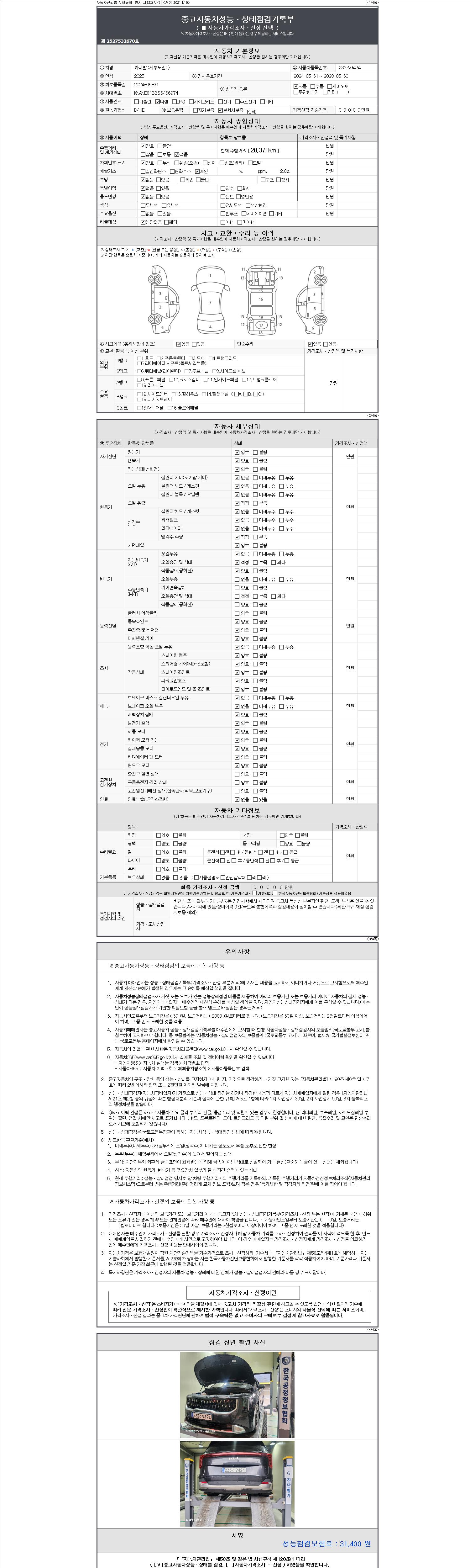 - 2. 차량 등록증이나 성능점검지 등을 상담자에게 요청및 확인하시고 사전에 미리 점검 하시기를 권유드립니다.