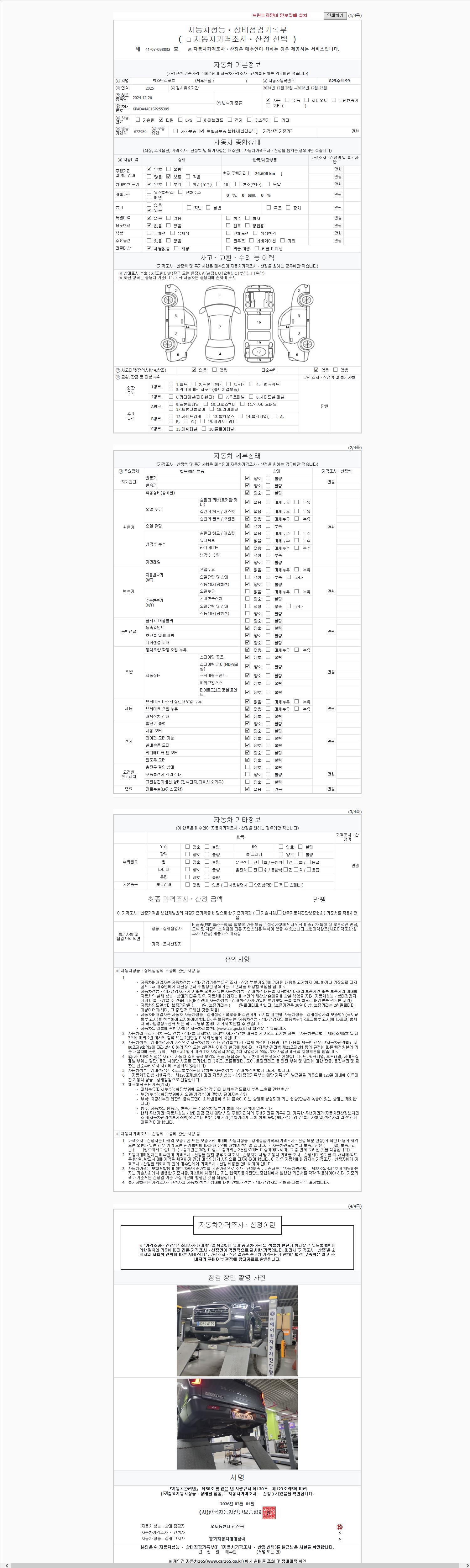 | 주행거리 | 24,000 km | 차량번호 | 825수4199 | 사고유무 | 성능기록부 참조 | 제시번호 | 제 2147483647 호 |