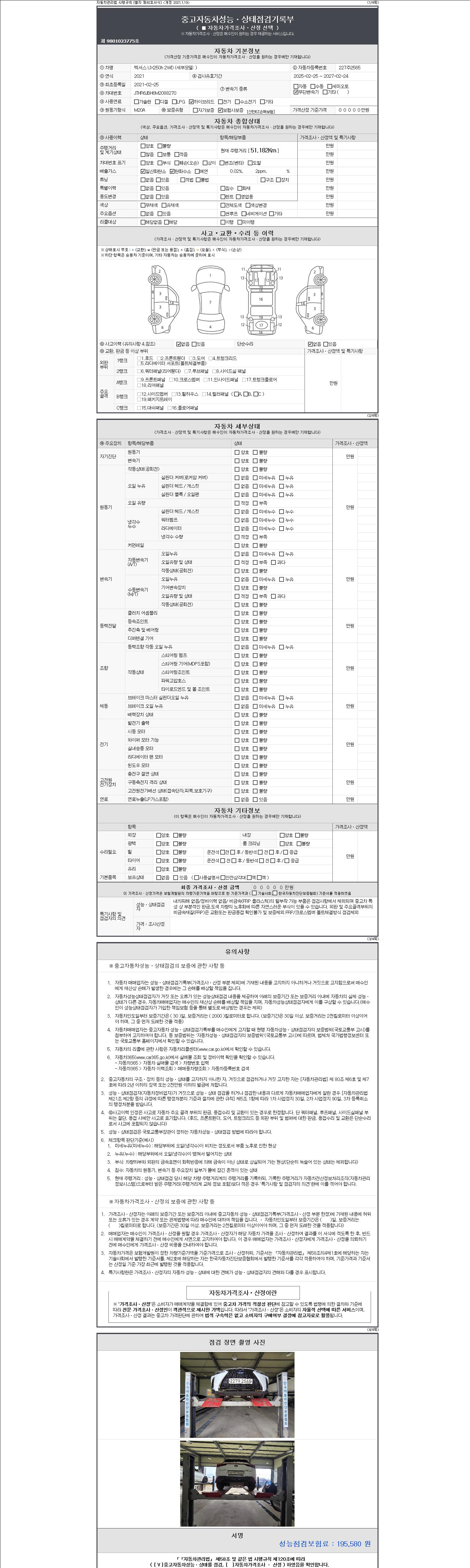 - 사고유무 : 성능기록부 참조