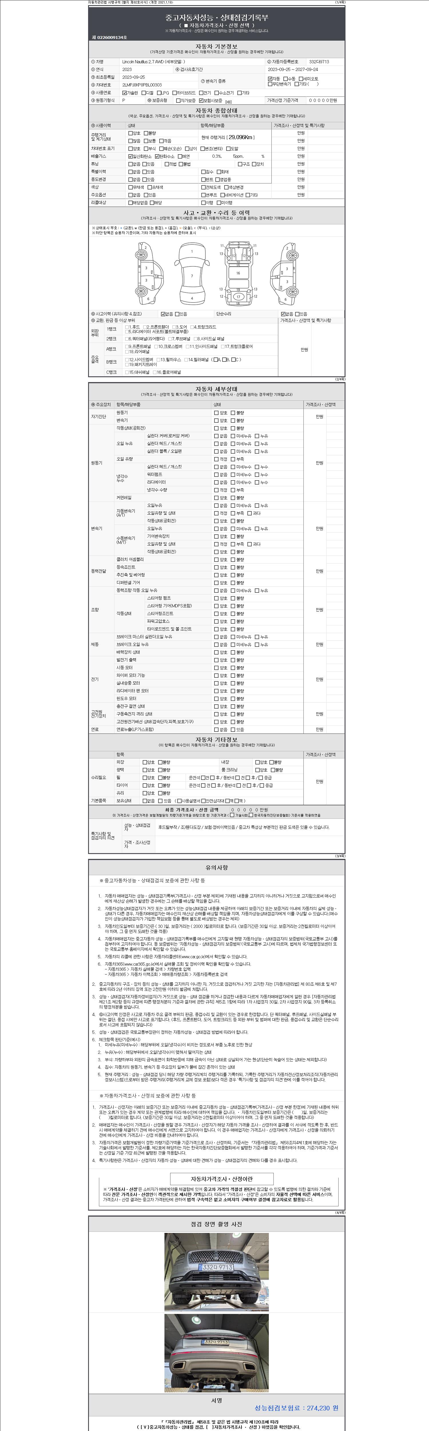 | 주행거리 | 29,096 km | 차량번호 | 332다9713 | 사고유무 | 성능기록부 참조 | 제시번호 | 제 2147483647 호 |