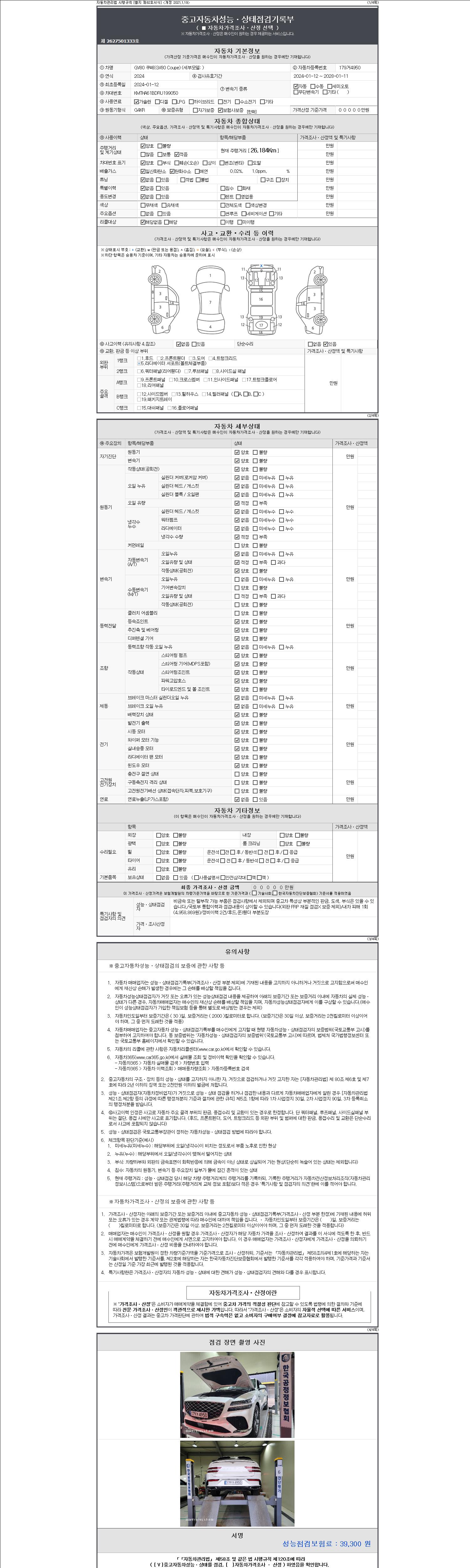 | 주행거리 | 26,184 km | 차량번호 | 179거4950 | 사고유무 | 성능기록부 참조 | 제시번호 | 제 2147483647 호 |