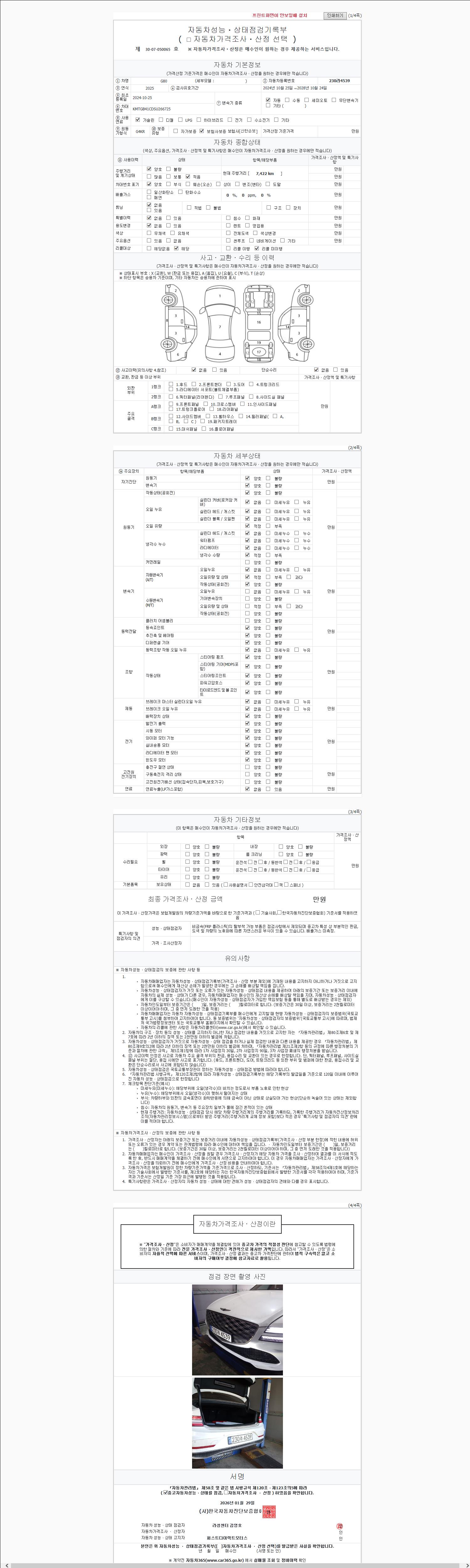 - 2. 차량 등록증이나 성능점검지 등을 상담자에게 요청및 확인하시고 사전에 미리 점검 하시기를 권유드립니다.