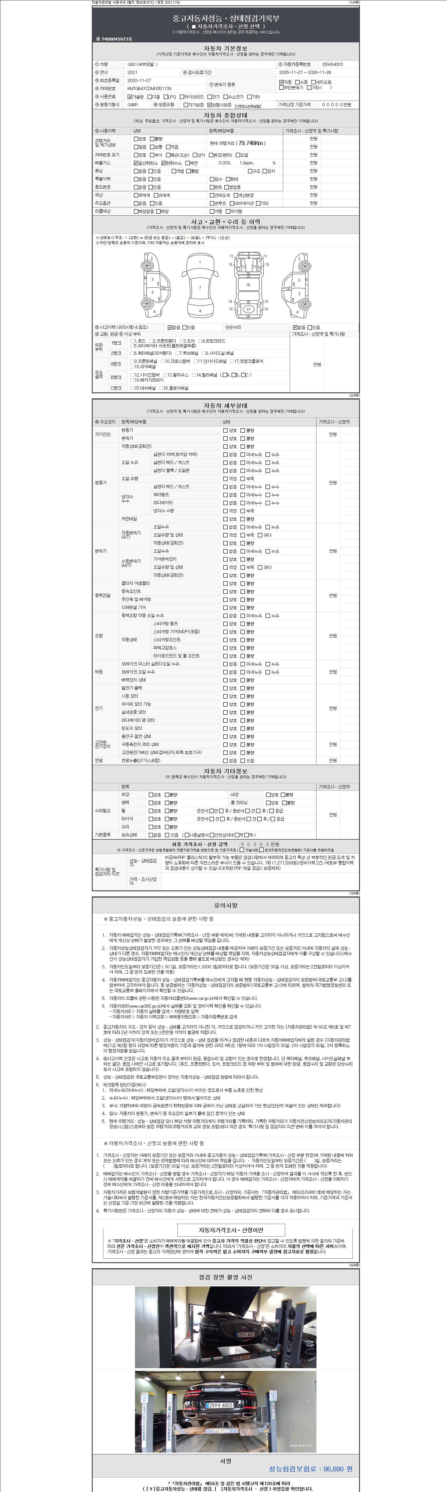 -중고자동차 매매업자를 통해 차량을 구입하실 경우 반드시 "중고자동차 성능, 상태점검 기록부"를 교뷰 받으셔야 하며, 매매업자는 반드시 의무 교부 하여야 압니다.