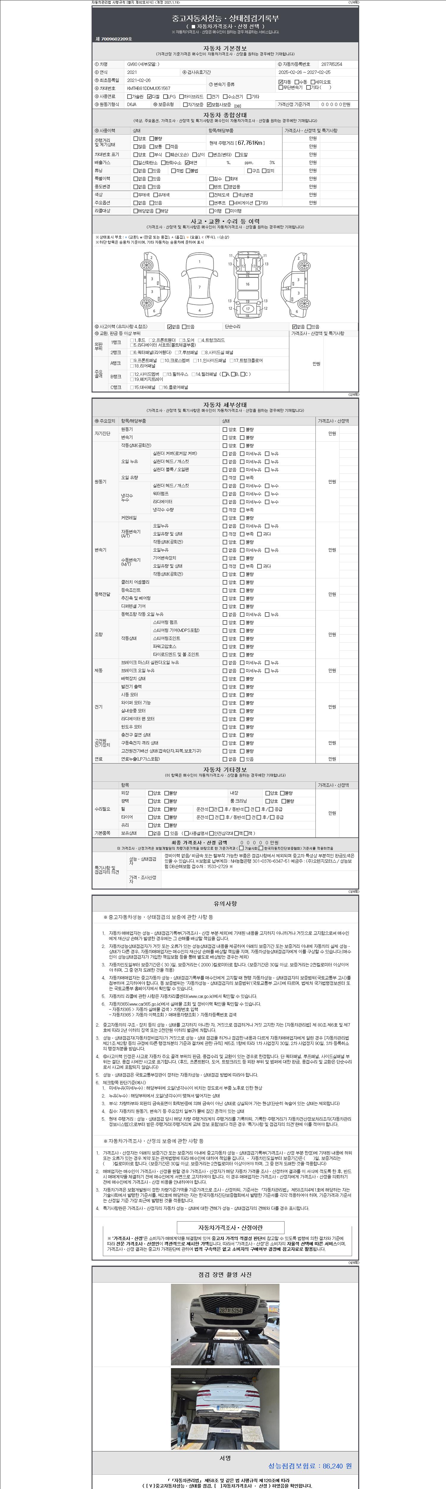 | 주행거리 | 67,761 km | 차량번호 | 287저5254 | 사고유무 | 성능기록부 참조 | 제시번호 | 제 2147483647 호 |