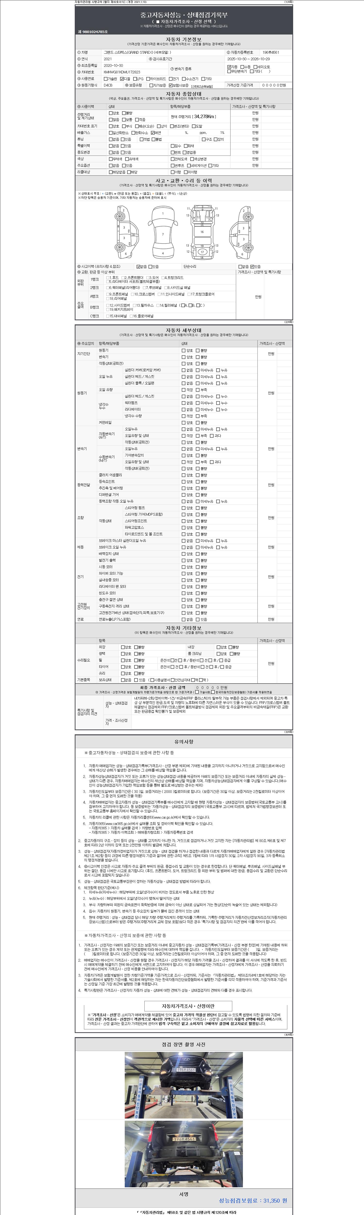 2. 차량 등록증이나 성능점검지 등을 상담자에게 요청및 확인하시고 사전에 미리 점검 하시기를 권유드립니다.