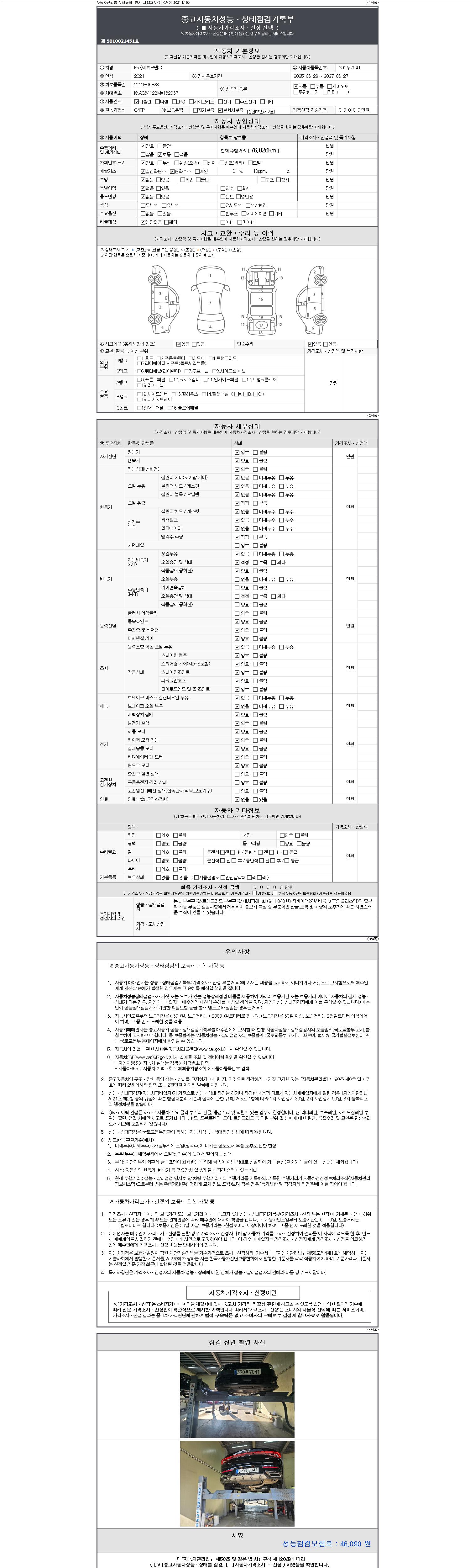 | 주행거리 | 76,026 km | 차량번호 | 390무7041 |