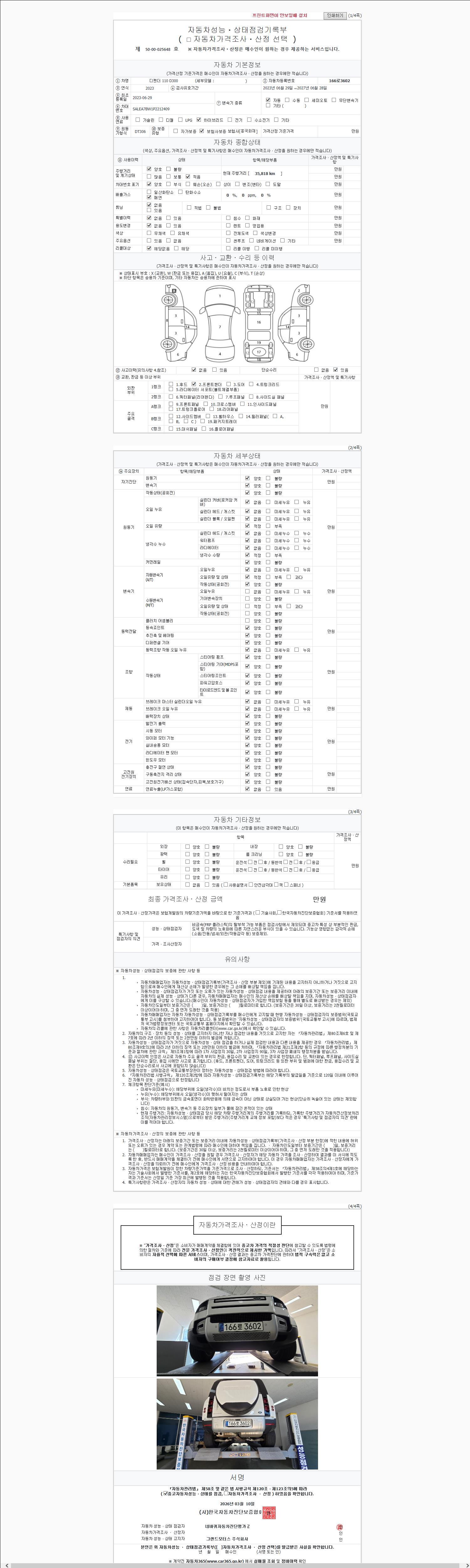 | 주행거리 | 35,818 km | 차량번호 | 166로3602 |