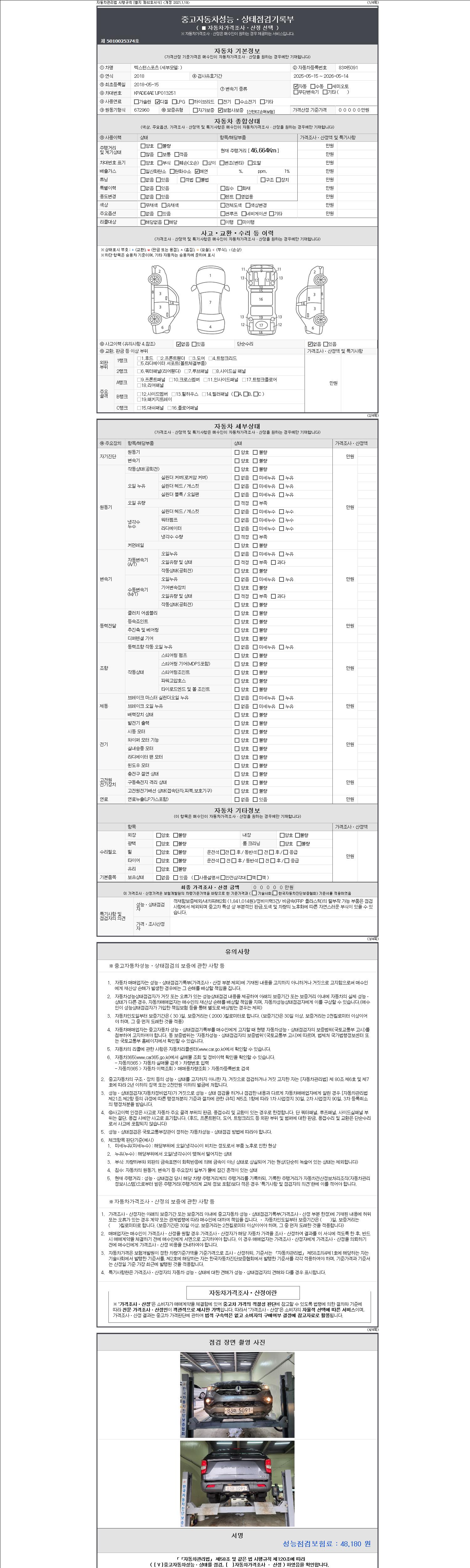 | 주행거리 | 46,664 km | 차량번호 | 83머5091 |