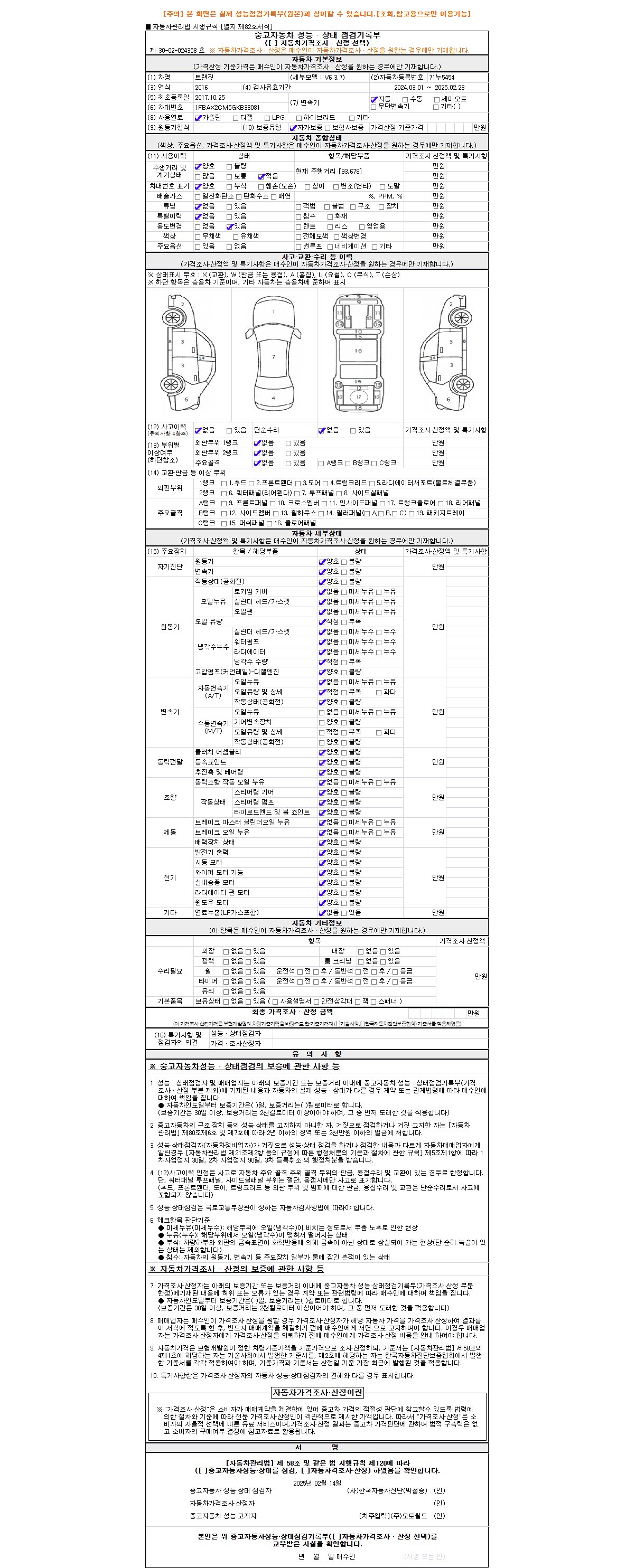 2. 차량 등록증이나 성능점검지 등을 상담자에게 요청및 확인하시고 사전에 미리 점검 하시기를 권유드립니다.