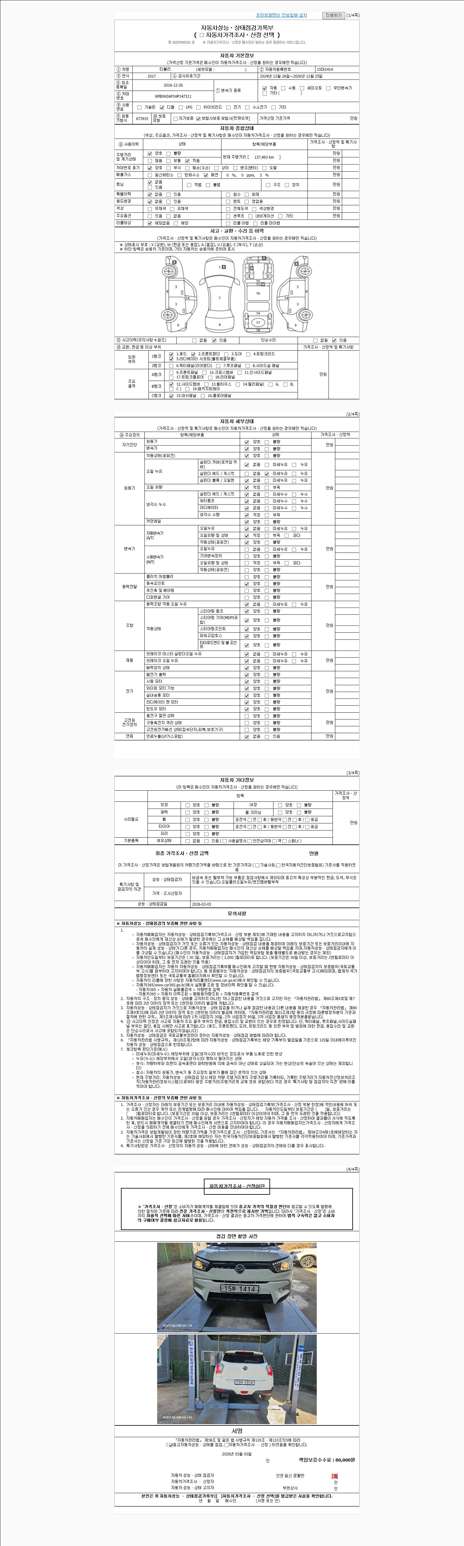 2. 차량 등록증이나 성능점검지 등을 상담자에게 요청및 확인하시고 사전에 미리 점검 하시기를 권유드립니다.