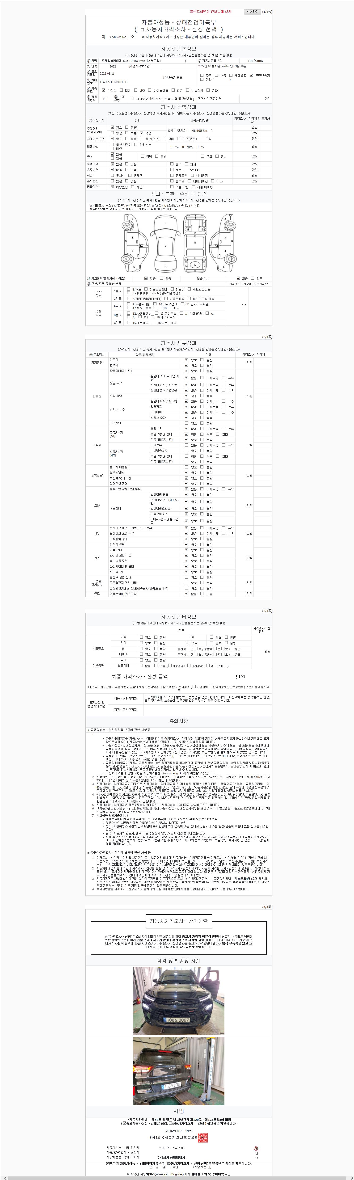 | 사고유무 | 성능기록부 참조 | 제시번호 | 제 2026035103 호 |
