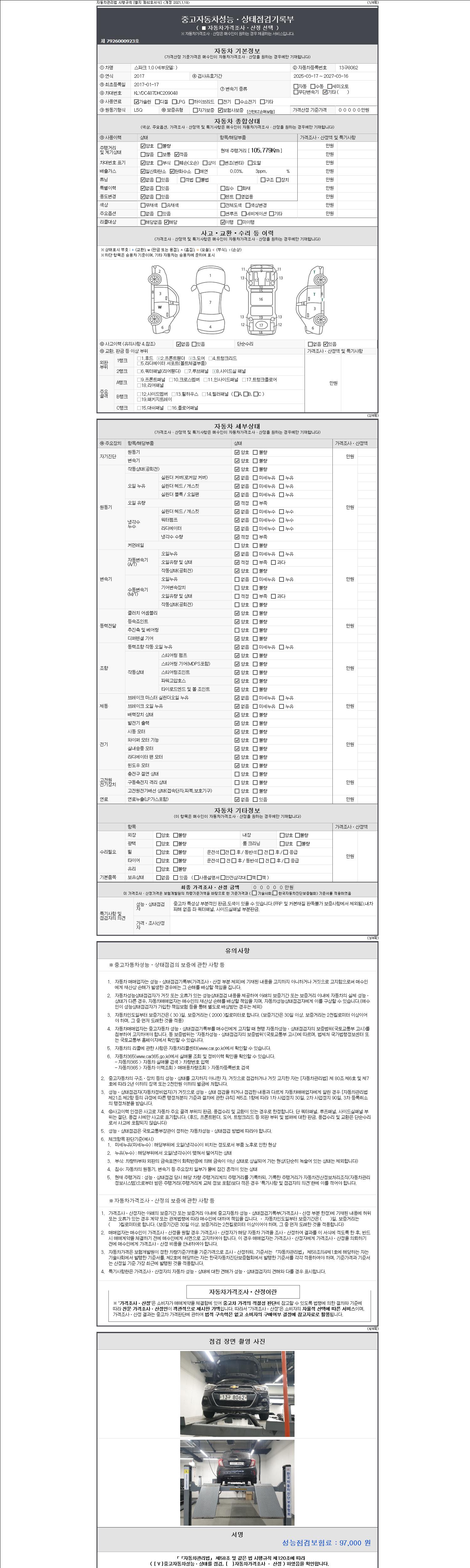 2. 차량 등록증이나 성능점검지 등을 상담자에게 요청및 확인하시고 사전에 미리 점검 하시기를 권유드립니다.