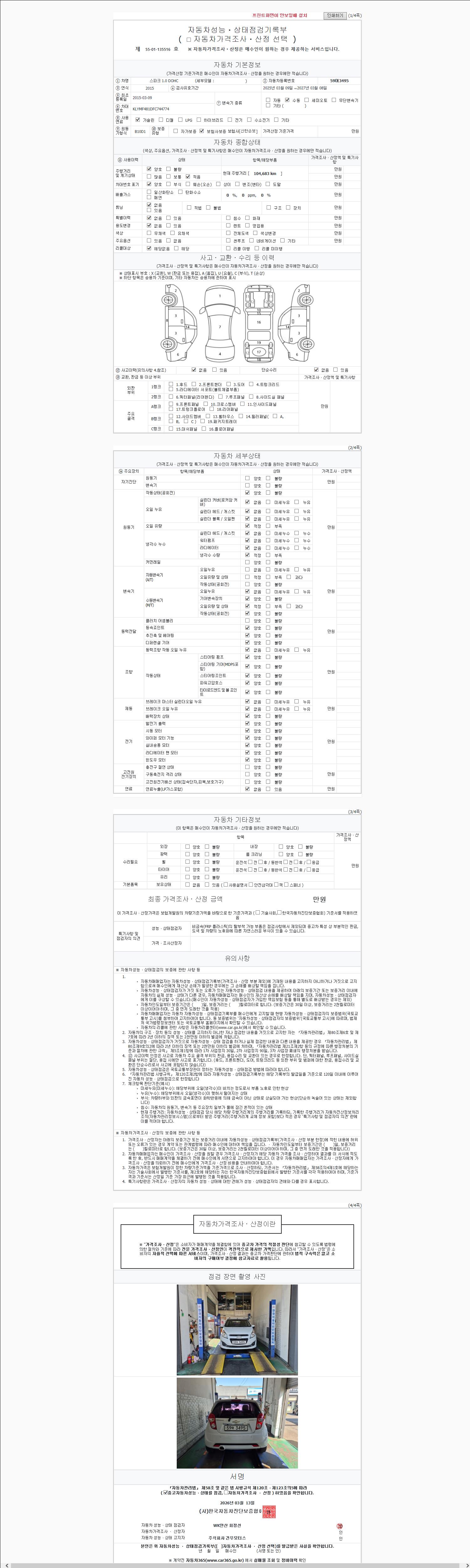 2. 차량 등록증이나 성능점검지 등을 상담자에게 요청및 확인하시고 사전에 미리 점검 하시기를 권유드립니다.