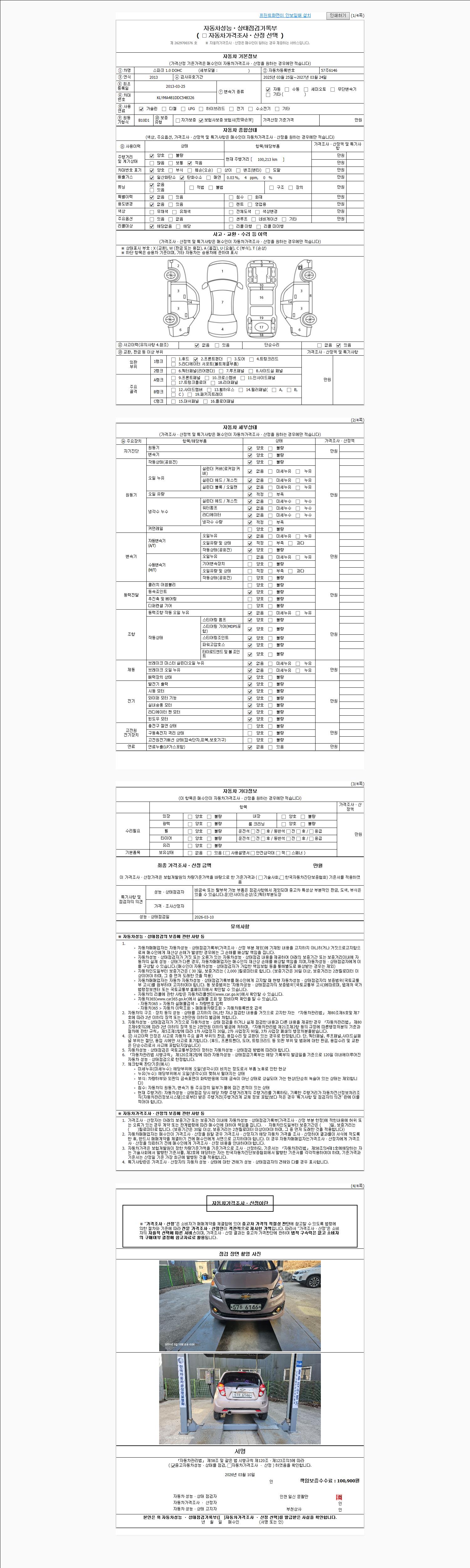 사고유무 성능기록부 참조 제시번호 제 2026012425 호