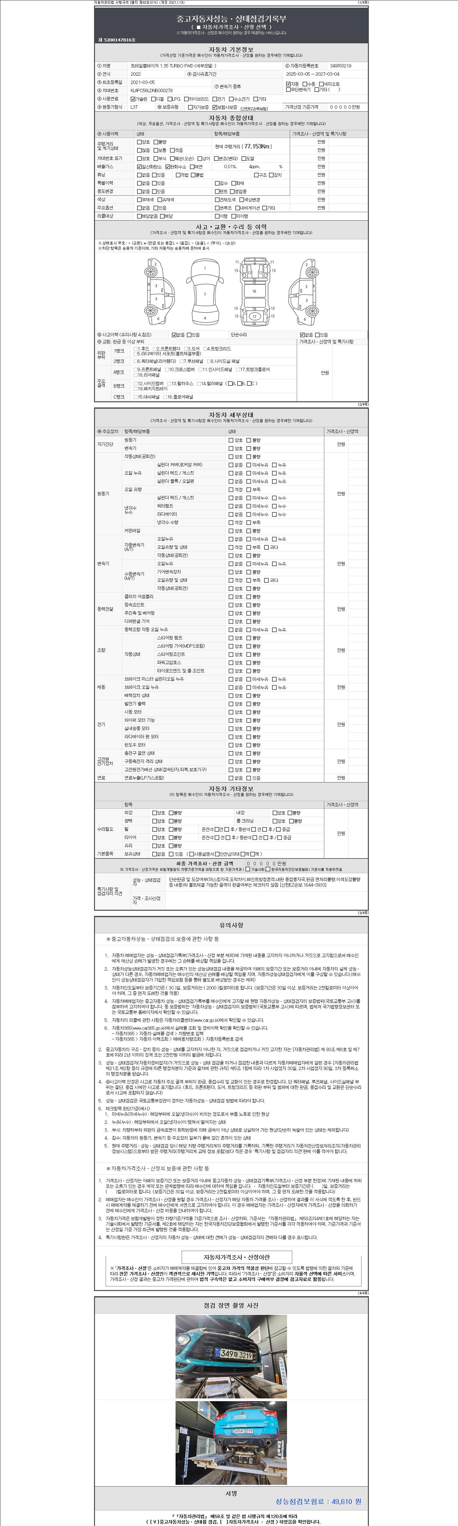 | 주행거리 | 77,153 km | 차량번호 | 349마3219 |
