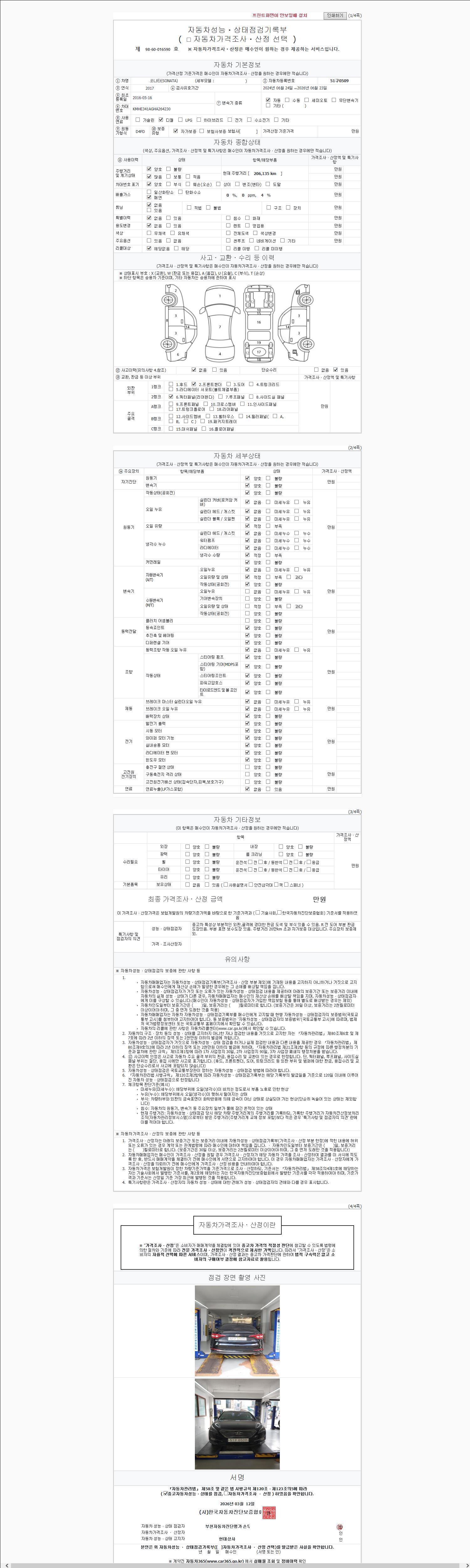 2. 차량 등록증이나 성능점검지 등을 상담자에게 요청및 확인하시고 사전에 미리 점검 하시기를 권유드립니다.