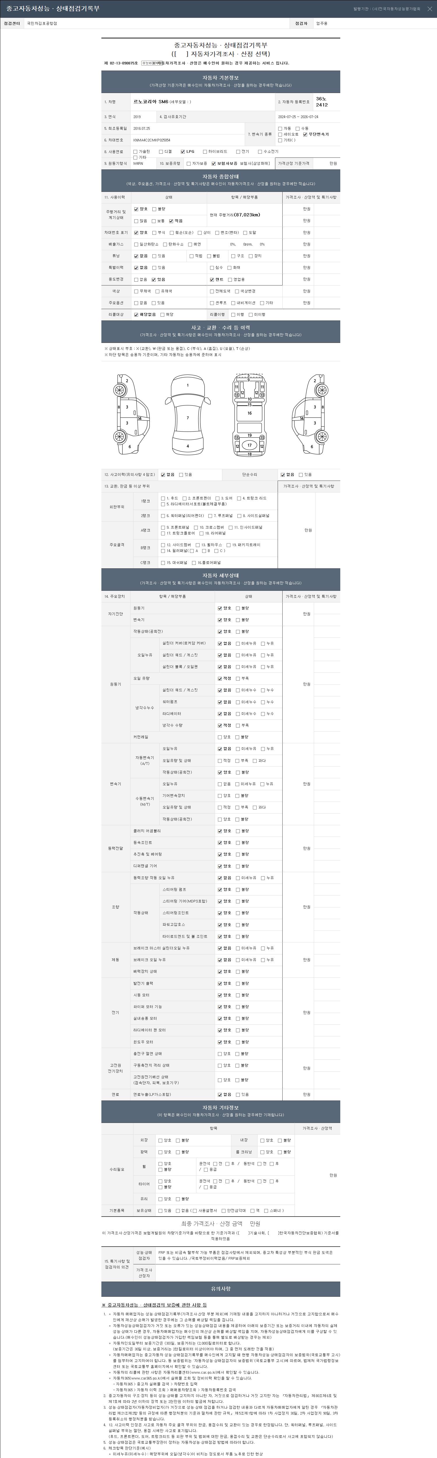 2. 차량 등록증이나 성능점검지 등을 상담자에게 요청및 확인하시고 사전에 미리 점검 하시기를 권유드립니다.