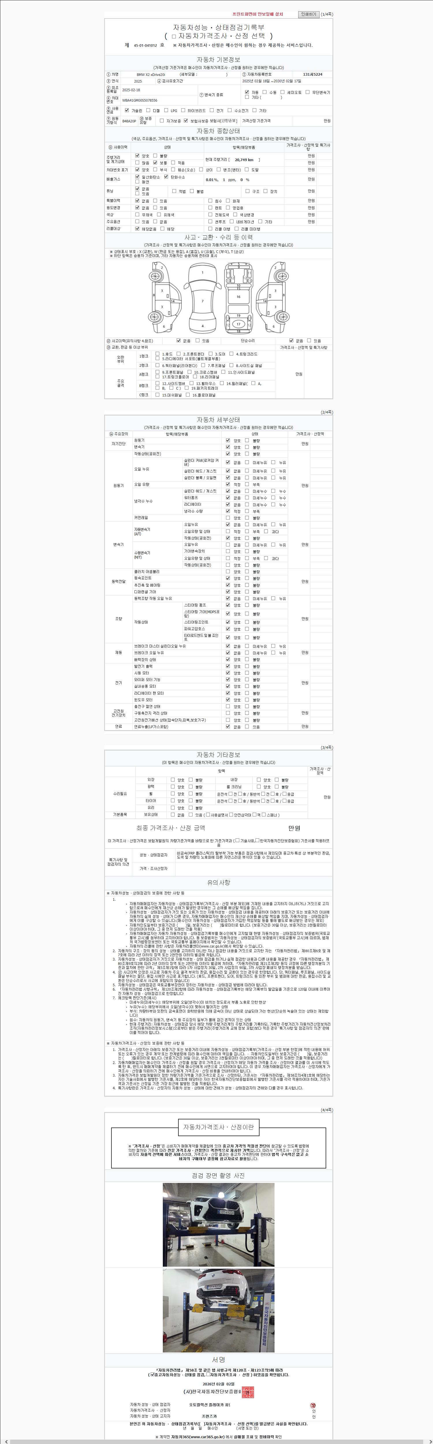 - 사고유무 : 성능기록부 참조
